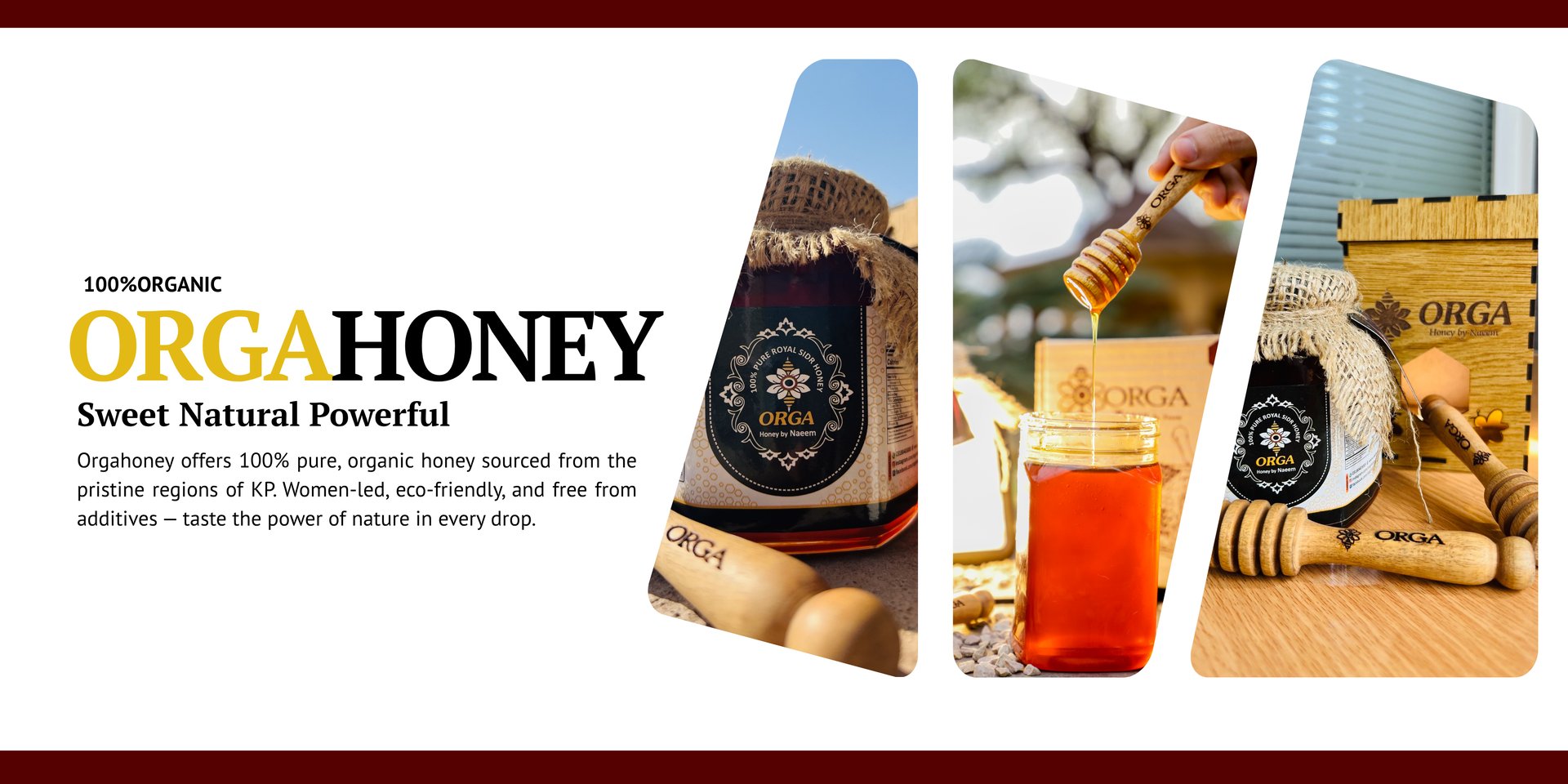 Discover 100% pure, organic honey from Orgahoney, a women-led initiative supporting local beekeepers. Experience the health benefits and rich flavours of natural honey sourced from the beautiful landscapes of KP. Taste the difference with every drop!